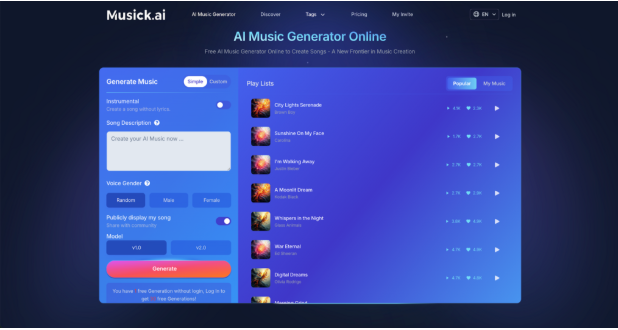 Stress makes decision-making harder; the last thing anyone needs is to click through dozens of menus. The Musick AI interface guides users through only a few essential choices—style description, optional vocalist gender, and model selection—so a track can be generated quickly without feeling like another task on the to‑do list.